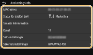 IP-adressen har inte angetts på rätt sätt om den visas som "0.0.0.0". Om du ansluter enheten till ett växlingsnav eller en brygga kan detta resultera i anslutningsfel även om IP-adressen är korrekt inställd. Du löser problemet genom att lägga in ett visst intervall innan enheten ska börja kommunicera. Ange väntetid innan enheten ansluts till ett nätverk Du kan skriva ut en lista över aktuella nätverksinställningar. Användarens datalista/systemansvarigs datalista |