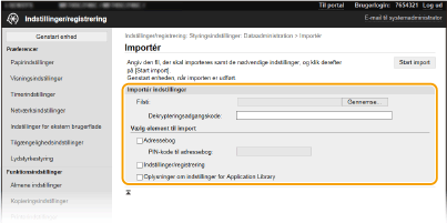 Import af oplysninger i adressebogen overskriver de adressebogsposter, der er registreret på maskinen i øjeblikket.