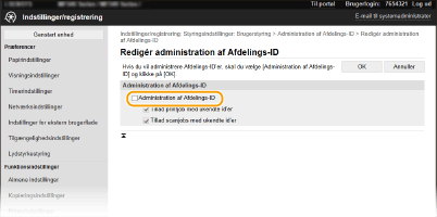 Marker afkrydsningsfeltet [Administration af Afdelings-ID].