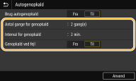 Angiver intervallet mellem genopkaldene. Indtast et tal for intervallet, og vælg <Anvend>.
