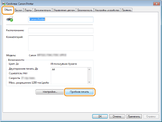 Для проверки работоспособности драйвера принтера в Windows можно напечатать пробную страницу.