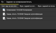 Отображает текущее состояние выбранного элемента. В качестве примера ниже приведен экран <Задание на копирование/печать>.