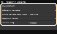 Отображает серийный номер аппарата.
