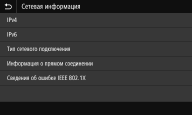 Отображает настройки сети, например IP-адрес аппарата, и состояние, например состояние беспроводного подключения по локальной сети.