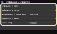Показва мрежовите настройки, като напр. IP адреса на устройството, и състоянието, като напр. условията за безжична LAN комуникация.