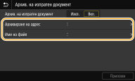 Изберете <Вкл.> в <Архив. на изпратен документ>.