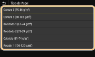 Se o ecrã mostrado acima não aparecer quando o papel é colocadoSe colocar sempre o mesmo papel no tabuleiro multifunções, pode ignorar as operações de definição do papel gravando o tamanho e o tipo do papel como predefinição. No entanto, o ecrã mostrado acima não aparece se registar a predefinição. Para ver o ecrã, selecione <Especificar ao Colocar Papel> (Registar predefinições de papel para o tabuleiro multifunções).