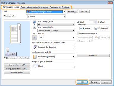 Especifique as definições de impressão conforme necessário e clique em [OK].