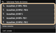 Se a ligação sem fios for configurada selecionando um router sem fios, o método de autenticação WEP está definido como <Abrir Sistema> ou o método de codificação WPA/WPA2 está definido como <Automático> (AES-CCMP ou TKIP). Se pretender selecionar <Chave Compartilhada> para autenticação WEP ou <AES-CCMP> para encriptação WPA/WPA2, terá de configurar a ligação utilizando <Inserir nome da rede manualmente (SSID)>. Configurar a ligação especificando definições detalhadas
