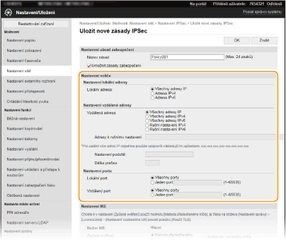 [Nastavení IPSec].