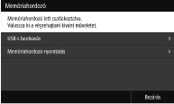 Ha a <Képer. mem.hord. csatl. esetén> beállítás értéke <Be>, megjelennek a rendelkezésre álló műveletek, amikor USB-memóriaeszközt helyez be, miközben megjelenik a Főképernyő. <Képer. mem.hord. csatl. esetén>