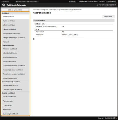 A Távoli felhasználói felületen a készülék számos beállítása módosítható. A legtöbb beállítás a készüléken is megadható, de vannak olyanok is, amelyek csak a Távoli felhasználói felületen. Ebben a fejezetben azt az alapvető eljárást mutatjuk be, amelyet követve módosíthatja a készülék beállításait a Távoli felhasználói felületről.