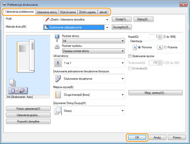 Określ ustawienia drukowania według potrzeb i kliknij przycisk [OK].