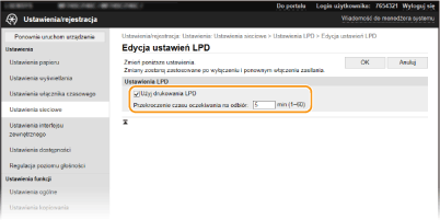 Zaznaczenie tego pola wyboru umożliwia wydruk za pomocą protokołu LPD. Jeśli drukowanie za pomocą protokołu LPD nie jest używane, należy usunąć zaznaczenie tego pola wyboru. [Użyj wydruku RAW]