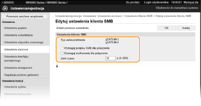 Określ ustawienia, które zostaną użyte gdy urządzenie połączy się z siecią jako klient SMB.