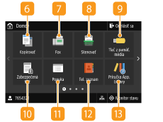 Zobrazí obľúbené nastavenia, ktoré sú uložené pre kopírovanie, faxovanie a skenovanie. Pridanie tlačidiel na obrazovku Domov