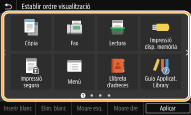Podeu afegir botons de drecera a la pantalla Inici per a les funcions que feu servir amb més freqüència, com ara <Còpia>, <Fax> i <Lectura>. Per exemple, podeu dur a terme tasques d'una manera més ràpida i eficient si assigneu una seqüència d'opcions (com ara, "Llegir les dues cares d'un original, desar-lo com a fitxer PDF molt comprimit i enviar-lo per correu electrònic") a un sol botó.