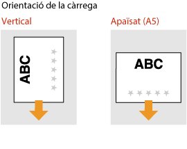 Quan imprimiu en paper preimprès, heu de canviar la col·locació de les cares del paper que s'ha de carregar cada vegada que porteu a terme la impressió a una cara i a doble cara. No obstant això, si <Canviar mètode d'alimentació de paper> està establert en <Prioritzar cara d'impressió>, la col·locació de les cares que utilitzeu per carregar el paper preimprès per a la impressió a doble cara també es pot fer servir per a la impressió a una cara. Aquesta opció resulta útil si porteu a terme freqüentment tant impressions a una cara com a doble cara. <Canviar mètode d'alimentació de paper>
