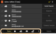 Sık kullanılan faks/tarama hedeflerini Adres Defterine kaydedebilir ve gerektiğinde bunları kolayca seçebilirsiniz (Adres Defterine Hedef Kaydetme). Hedefler, Adres Defterindeki listelerden alfabetik olarak veya üç basamaklı sayılar (kodlu arama numaraları) girilerek aranabilir. Şu özellikleri kullanarak hedefleri daha hızlı şekilde de belirtebilirsiniz.