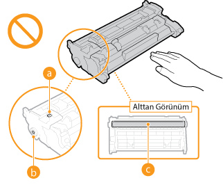 Toner kartuşunu mutlaka kolu kullanarak tutun.