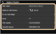 Geçerli ağ ayarlarının listesini yazdırabilirsiniz. Kullanıcı Veri Listesi/Sistem Yöneticisi Veri Listesi