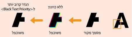 שכפול של טקסט שחור או כמעט שחור בצבע הקרוב למסמך המקור.