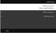 في حالة تعيين <الشاشة عند توصيل وسائط ذاكرة> على <تشغيل>، يتم عرض الإجراءات المتاحة عند إدخال جهاز ذاكرة USB أثناء عرض الشاشة الرئيسية. <الشاشة عند توصيل وسائط ذاكرة>