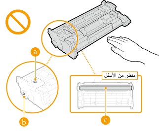 ) أو الوصلات الكهربائية ( ). لتجنب خدش سطح الاسطوانة داخل الجهاز، أو تعريضها للضوء، لا تفتح الغطاء الواقي للأسطوانة ( ).