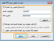 [Set PIN] لتعيين رمز PIN، حدد مربع الاختيار وأدخل نفس الرقم في كل من مربعي النصوص [PIN] و [Confirm].