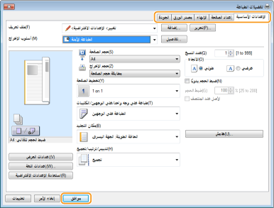 حدد إعدادات الطباعة حسب الضرورة، ثم انقر على [موافق].