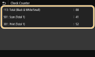 شما می توانید تعداد کل صفحات چاپ شده توسط دستگاه را بررسی کنید. این مقادیر کلی شامل فاکس ها، گزارشات و لیست ها علاوه بر کپی ها و نتایج چاپی داده ها از رایانه می شود.