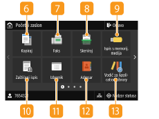 Pritisnite da biste provjerili status ispisivanja, pogledali povijest korištenja te da biste pogledali mrežne postavke, npr. IP adresu uređaja. Možete i provjeriti status uređaja, primjerice veličinu papira i preostalu količinu tonera te je li došlo do pogrešaka. Zaslon <Nadzor statusa>