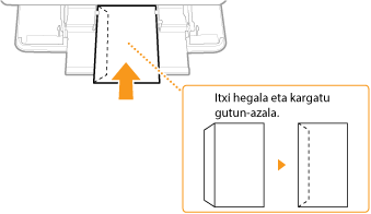 Atal honetan gutun-azalak nahi duzun orientazioarekin nola kargatu behar diren azaltzen da, eta gutun-azalak kargatu baino lehen jarraitu beharreko prozedurak ere bai. Gutun-azalak erabilera anitzeko erretiluan kargatzeko prozedura orokorraren deskribapen bat jasotzeko, ikusi Papera erabilera anitzeko erretiluan kargatzea.