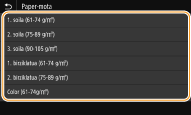 Paper-ezarpen lehenetsia erregistratu ondoren, papera kargatzean ez da paper-ezarpenen pantaila bistaratuko eta beti ezarpen bera erabiliko da. Paper-ezarpenak aldatu gabe beste paper-tamaina edo mota bat erabiltzen baduzu, baliteke makinak behar bezala ez inprimatzea. Arazo hau saihesteko, hautatu <Zehaztu papera kargatzean> 3. urratsean eta ondoren kargatu papera.
