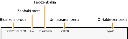Erregistratu zure makinaren fax-zenbakia eta unitate-izena. Informazio hau makinatik bidalitako orrialde bakoitzaren goialdean agertzen da.