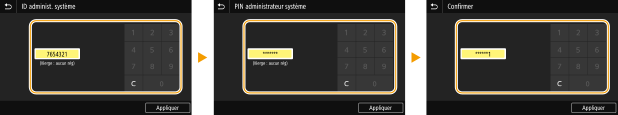 2 | Saisissez le nom de l'administrateur système, puis sélectionnez <Appliquer>. Pour en savoir plus sur la saisie de texte, reportez-vous à la section Saisie du texte. |