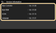 Checking the firmware versionYou can check the firmware version from the operation panel of the machine. After completion of the firmware update operation, make sure that the update was performed correctly. Checking the Firmware Version |