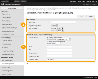 Select [Device Management]  [Key and Certificate Settings].