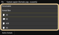 Si le format du papier chargé n'apparaît pas, sélectionnez <Autres formats>.