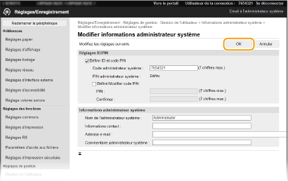 Vous ne pouvez modifier certains réglages que si vous êtes connecté en tant qu'administrateur système.