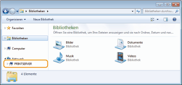 Wählen Sie den Druckerserver in [Netzwerk] oder [Netzwerkressourcen].