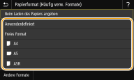 Wenn das Format des eingelegten Papiers nicht angezeigt wird, wählen Sie <Andere Formate>.