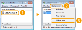 Wählen Sie das Dokument, das Sie abbrechen möchten, und wählen Sie <Abbrechen>