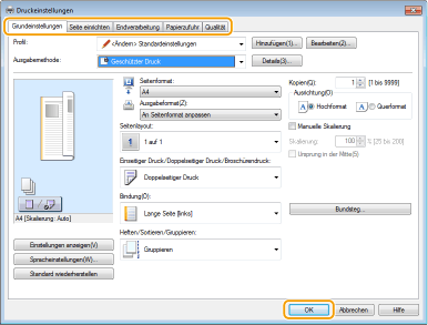 Legen Sie gegebenenfalls die Druckeinstellungen fest, und klicken Sie auf [OK].