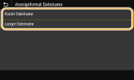 Wählen Sie <Kurzer Dateiname> oder <Langer Dateiname>