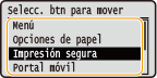 Una pulsación larga sobre <Mover izq.> o <Mover der.> hace que el botón seleccionado se desplace de forma continua.