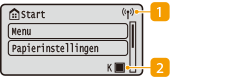![]() | Wi-Fi pictogramVerschijnt als het apparaat is verbonden met een draadloos LAN. Resterende hoeveelheid toner in de cartridgesHiermee wordt de resterende hoeveelheid toner in cartridges in stappen aangegeven. Dit is verborgen als het scherm Start actief is. |