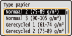 De papierformaten die u met de bovenstaande procedure registreert, worden weergegeven in het scherm voor het selecteren van het papierformaat van de papierlade of de multifunctionele invoer.
