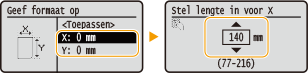 Geef de lengte van de <X>-zijde en <Y>-zijde op.