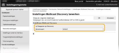 1 | Selecteer [Instellingen Multicast Discovery] [Bewerken]. |